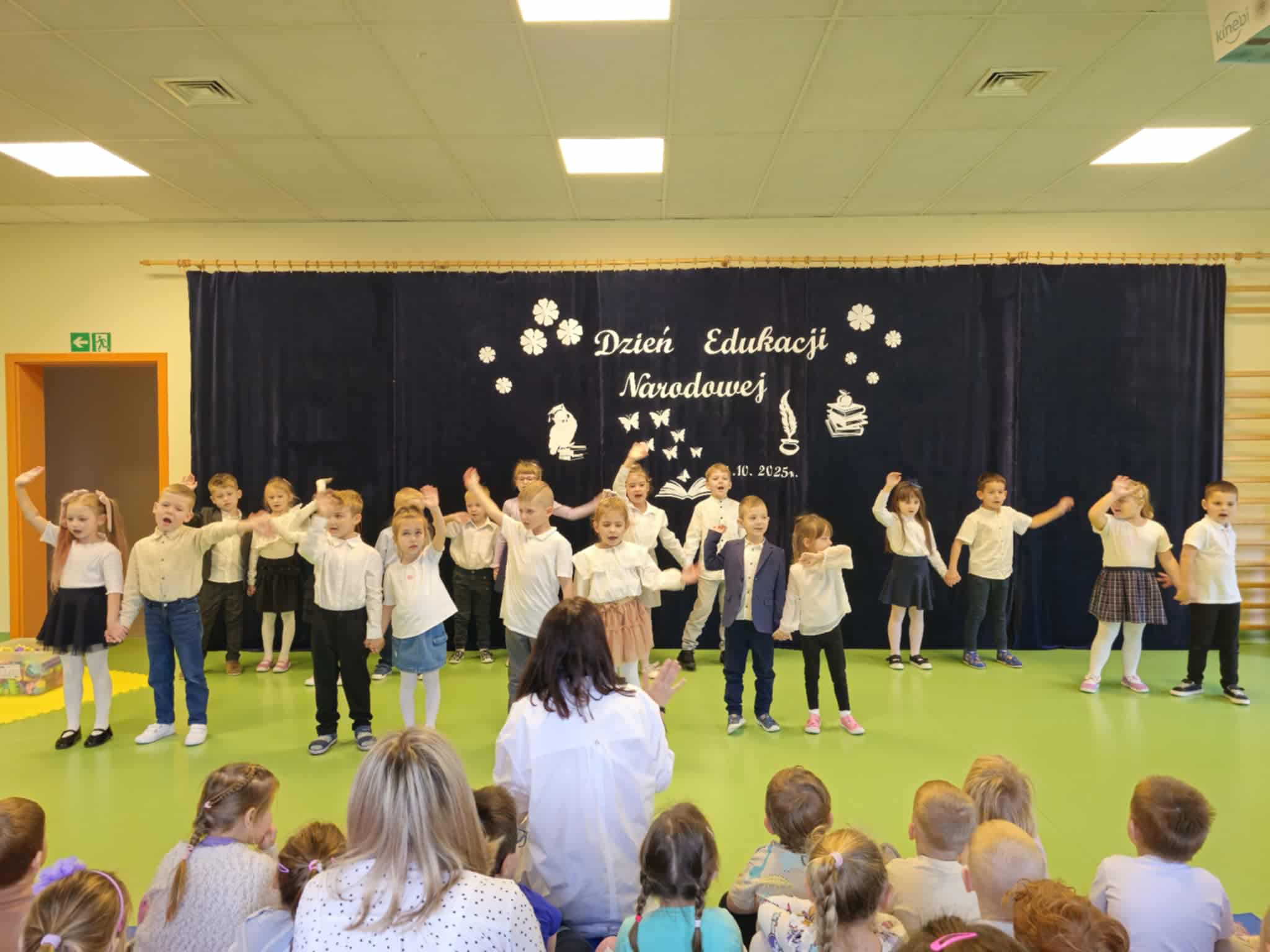 Dnia 14.10.2025r. w naszym przedszkolu obchodziliśmy DEN, czyli święto wszystkich nauczycieli i pracowników oświaty. Dzieci z grupy starszej -Pszczółki z radością przygotowały występ artystyczny- recytowały wierszyki, śpiewały piosenki, tańczyły. W ten sposób przedszkolaki podziękowały nauczycielom za codzienną pracę, cierpliwość i troskę. To był wyjątkowy dzień, pełen uśmiechów, serdeczności i miłych chwil.