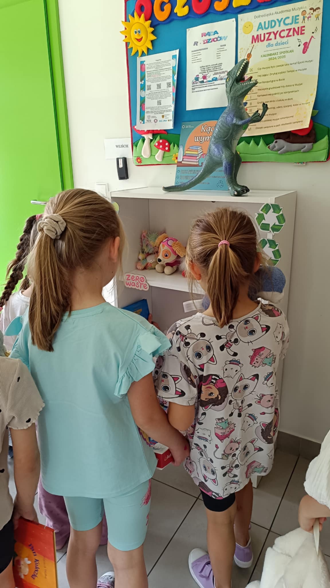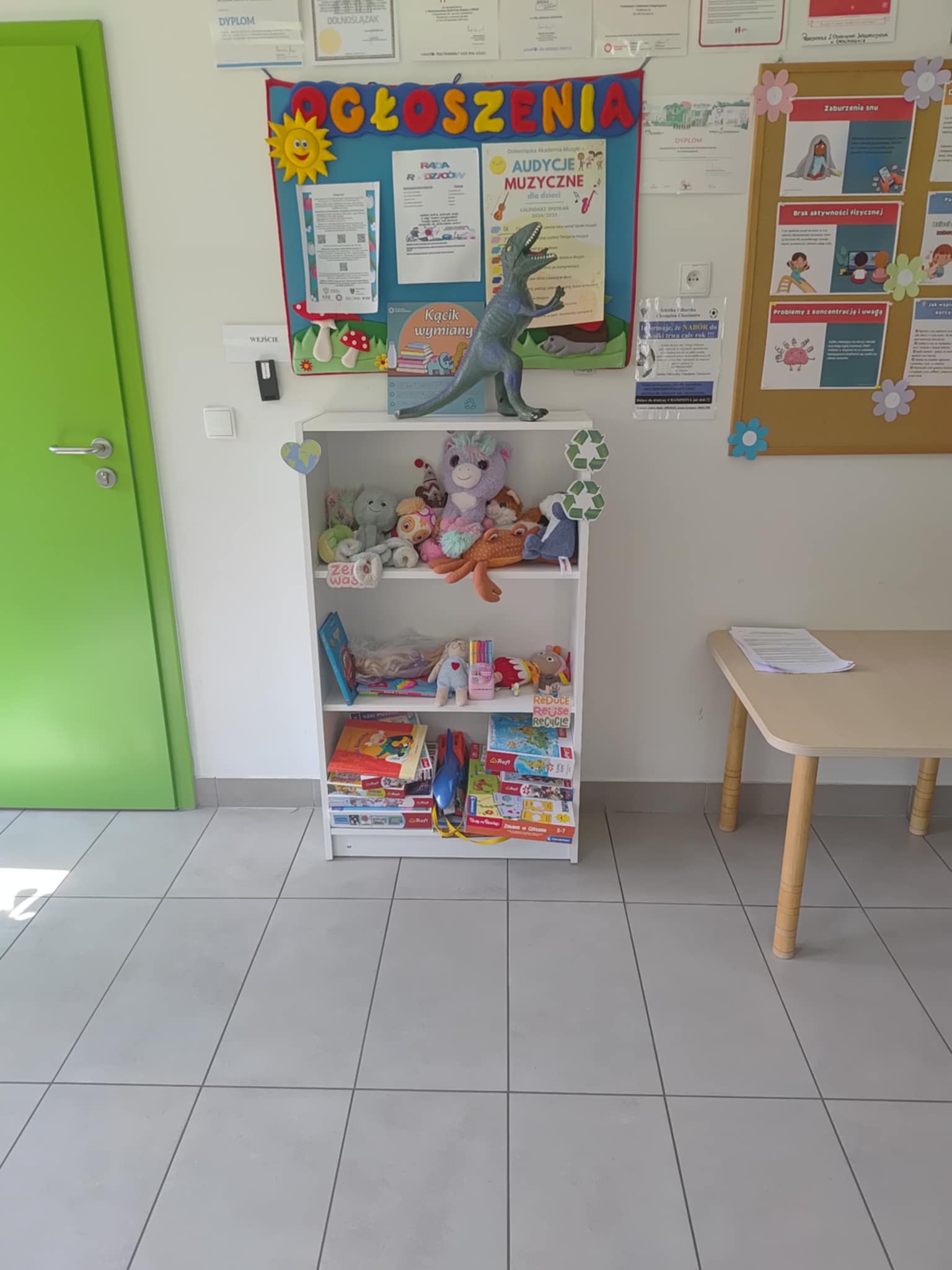 W dniu 05.06.2025 r. w naszym przedszkolu odbyły się warsztaty w ramach akcji ,,kącik wymiany prowadzone przez Panią z Związku Gmin Zagłębia Miedziowego w Polkowicach. Tematyka warsztatów dotyczyła zasad prawidłowej segregacji odpadów, skutków nadmiernej produkcji śmieci i możliwość ponownego wykorzystania niepotrzebnych przedmiotów. Dzieci stworzyły kącik wymiany, gdzie zostawiły przyniesione przez siebie rzeczy tj. pluszaki , gry planszowe oraz książki. Teraz dzieci mogą się wymieniać swoimi niepotrzebnymi rzeczami.