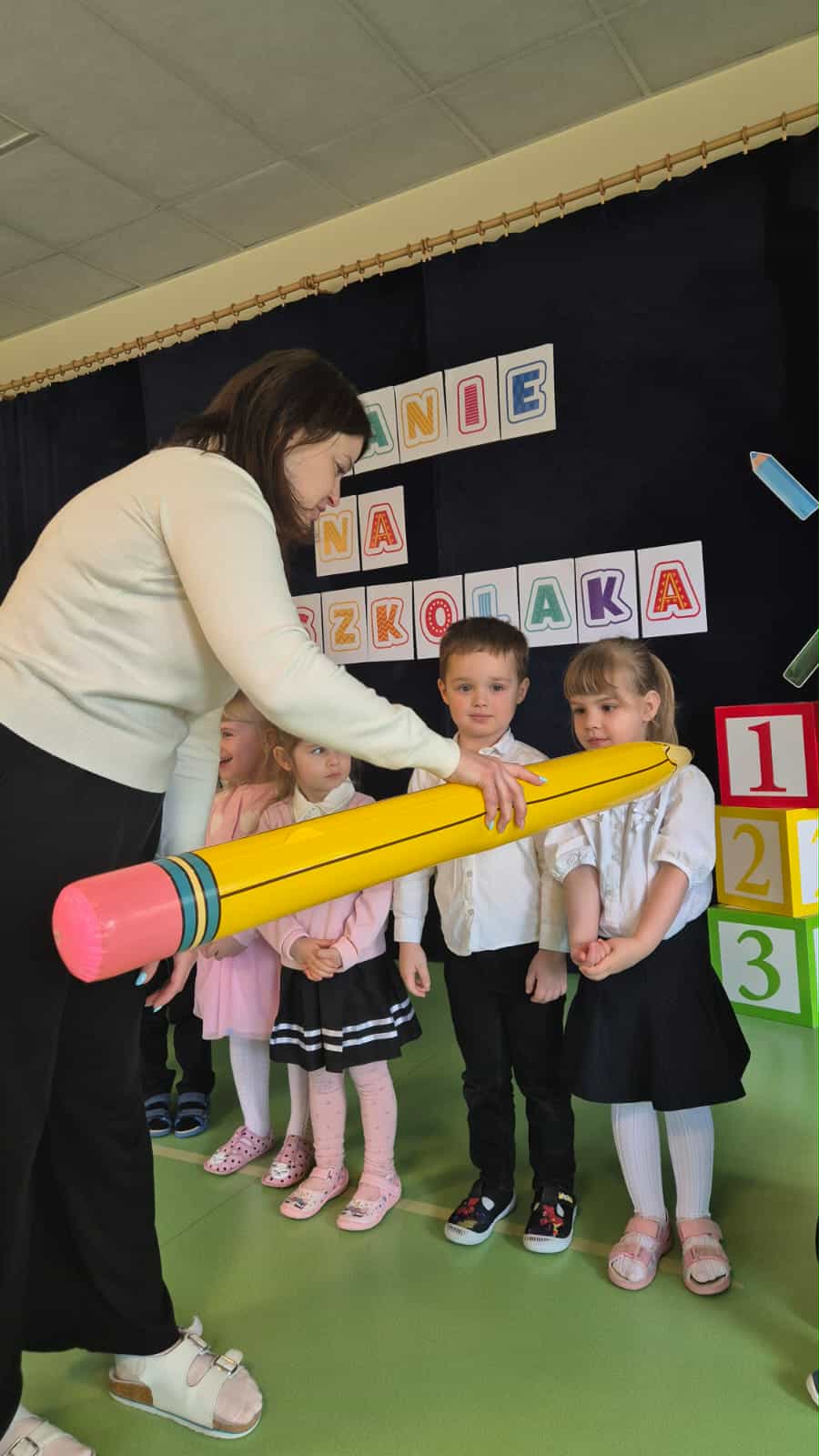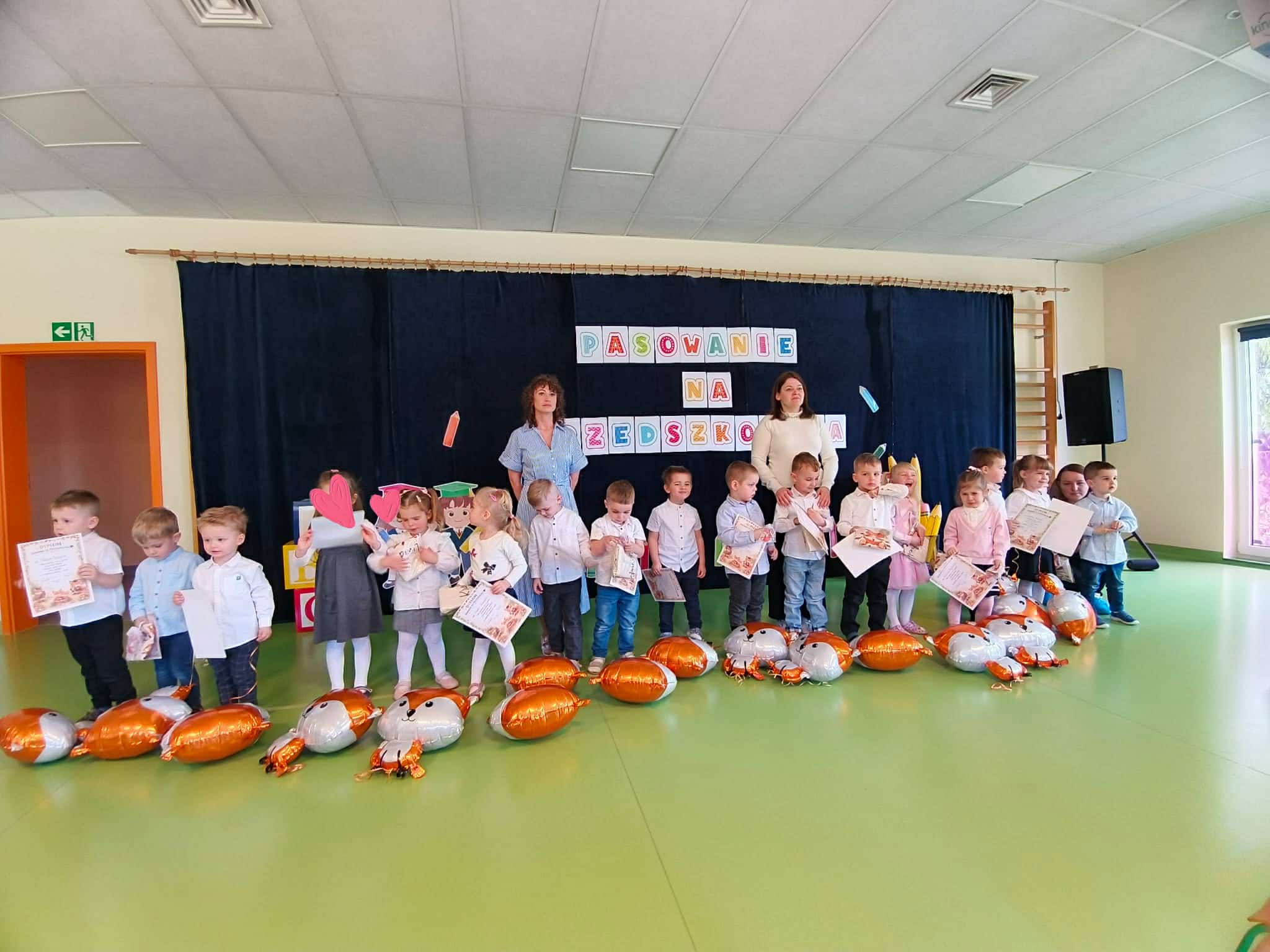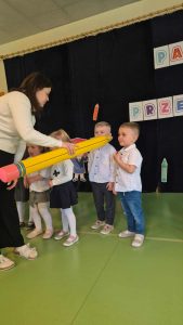 W naszym przedszkolu odbyła się wyjątkowa uroczystość – Pasowanie na Przedszkolaka To był pełen emocji i radości dzień! Dzieci z grupy Liski oraz Rybki z dumą zaprezentowały swoje umiejętności, a następnie zostały oficjalnie przyjęte do grona przedszkolaków. Nie zabrakło uśmiechów, wzruszeń i gromkich braw Każdy przedszkolak otrzymał pamiątkowy dyplom oraz upominek, które będą przypominać o tym ważnym wydarzeniu Gratulujemy naszym wspaniałym przedszkolakom odwagi, zaangażowania i pięknego występu! Życzymy Wam wielu radosnych chwil, nowych przyjaźni i cudownych przygód w przedszkolu.
