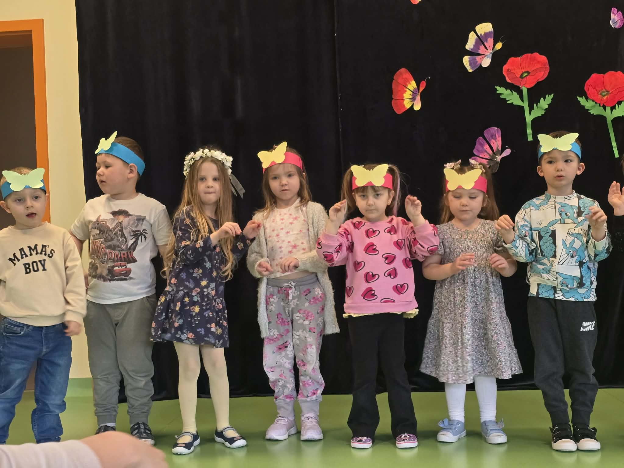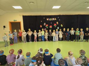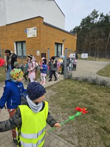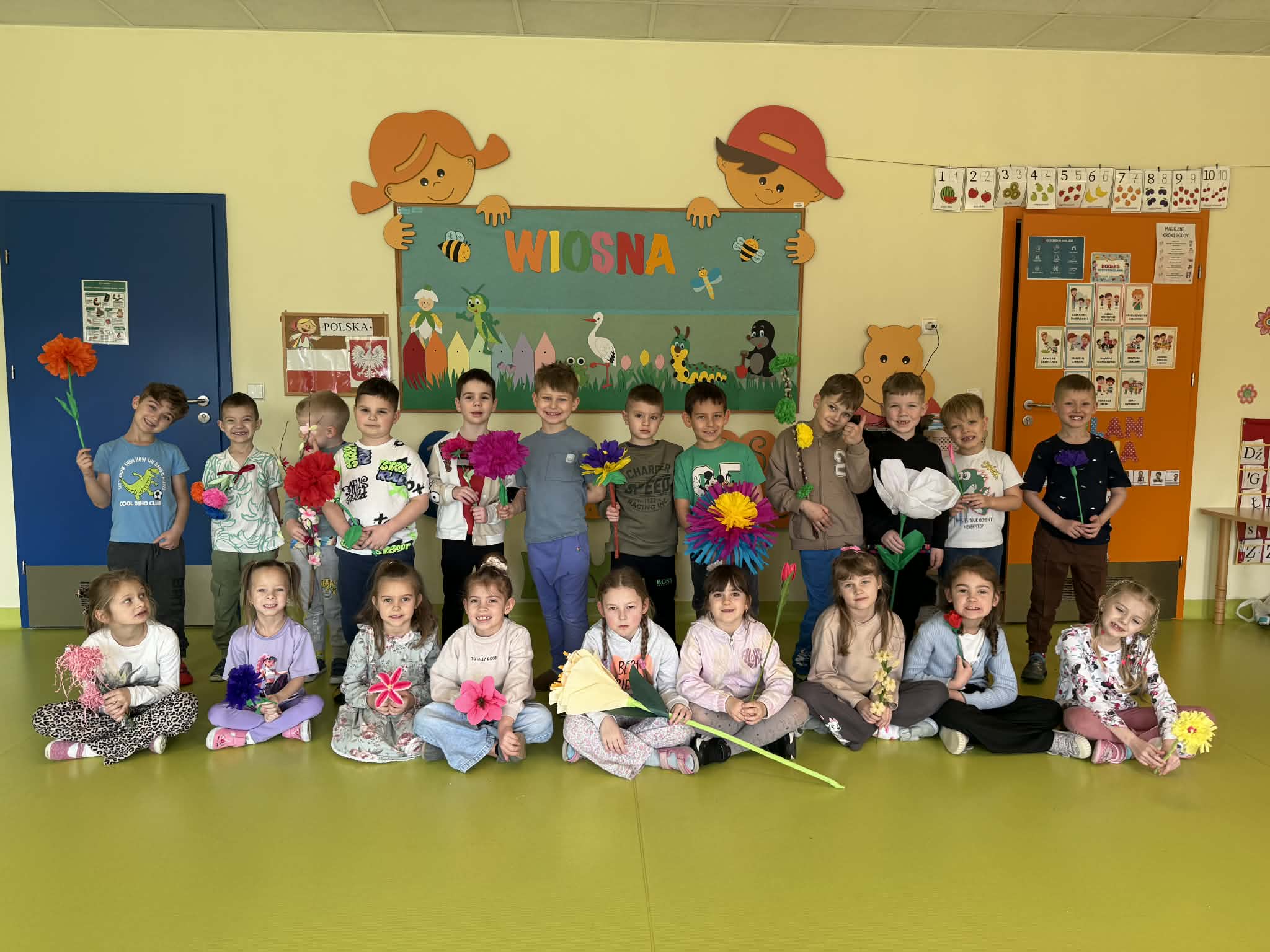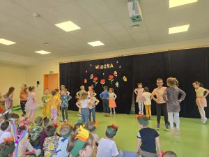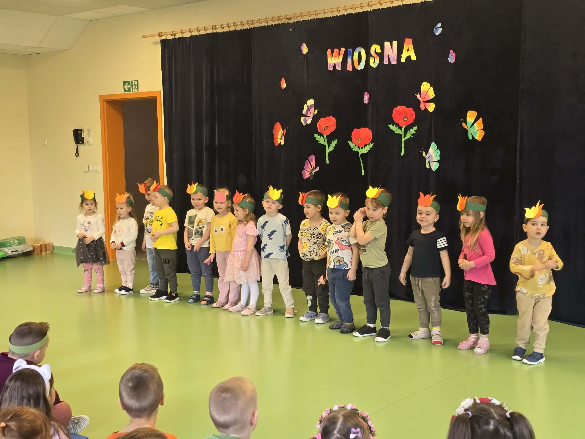 Dnia 20.03.2026 w naszym przedszkolu odbyło się radosne powitanie wiosny. Uroczystość rozpoczęła się występem dzieci na sali gimnastycznej, podczas którego przedszkolaki zaprezentowały piosenki oraz krótkie układy taneczne związane z tematyką wiosenną. Następnie wszyscy uczestnicy wydarzenia wzięli udział we wspólnym pochodzie. Dzieci, trzymając w rękach kolorowe kwiatki oraz grając na instrumentach, wyruszyły na spacer, aby symbolicznie pożegnać zimę i przywitać nadchodzącą wiosnę. Wydarzenie przebiegło w radosnej atmosferze i dostarczyło dzieciom wielu pozytywnych emocji.