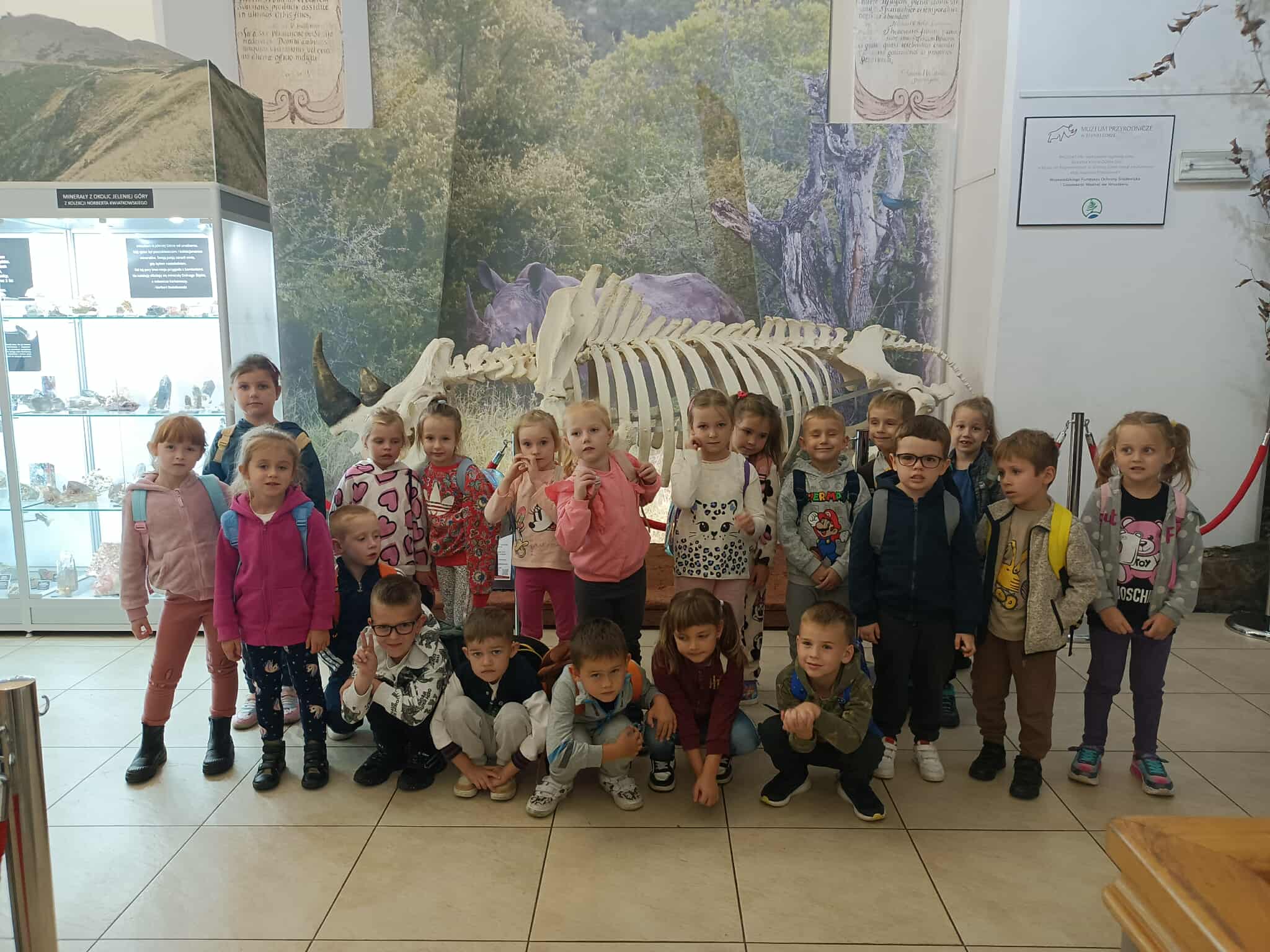 Dnia 06.10.2025r. grupy: IV "Wiewiórki", V "Żabki" oraz VI "Pszczółki" wyjechały na wycieczkę do Muzeum Przyrodniczego w Jeleniej Górze. Na miejscu dzieci uczestniczyły w warsztatach przyrodniczych dotyczących chomików europejskich, podczas których dowiedziały się wielu ciekawych informacji o ich zwyczajach, sposobie życia i występowaniu. Wykonały pracę plastyczną, którą przywiozły ze sobą do przedszkola. Poszerzyły swoją wiedzę przyrodniczą oglądając preparaty dermoplastyczne ptaków, ssaków, gadów oraz skamieniałości, poroża, a także kolekcje motyli, minerałów, przekrojów drzew, czy gipsowych modeli grzybów.